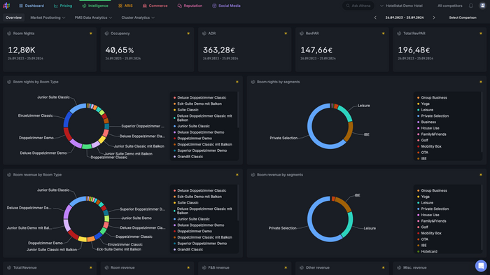 Wissen ist Macht: Das Business-Intelligence-Modul liefert alle relevanten Daten für den Hotel-Erfolg. Es bietet einen umfassenden Überblick über interne Performance, Markttrends und das Verhalten der Gäste. Anhand dieser benutzerfreundlich aufbereiteten Analysen treffen Sie fundierte Entscheidungen zur Marktpositionierung, Zimmerverfügbarkeit und zum Beispiel, wie sich umsatzschwache zu umsatzstarken Zeiträumen entwickeln.