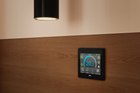 Z35 v3 by Zennio is able to contain up to 56 controls/indicators, distributed in up to 7 pages with a navigation menu. A screensaver with date, time and/or temperature is set when the touch panel is not in use and the menu is shown automatically when the user approaches.